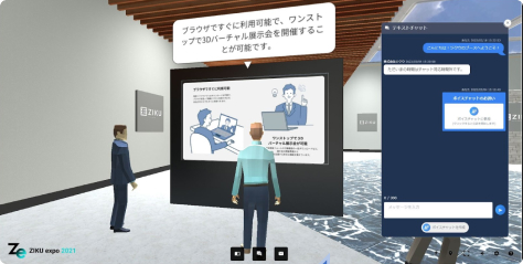ブース担当者からも、来場者からも、お互いにテキスト/音声で声掛け/会話が可能
